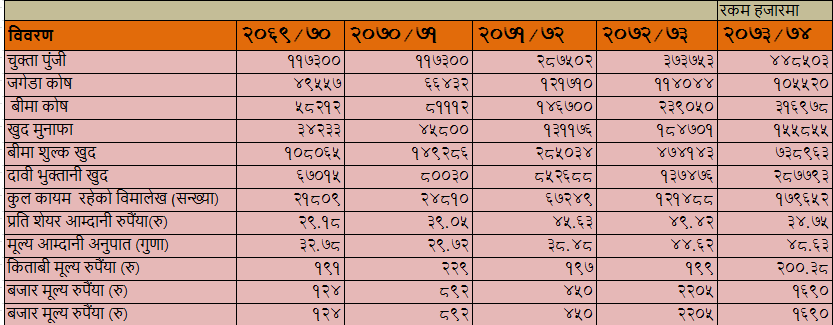 प्रिमियर इन्स्योरेन्स कम्पनी लिमिटेडको ५ वर्षको वित्तिय विवरण :