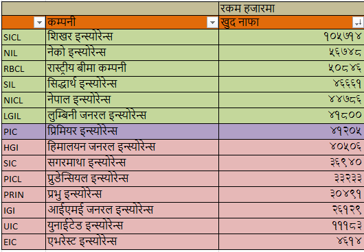 कम्पनीको प्रकार : निर्जीवन बीमा