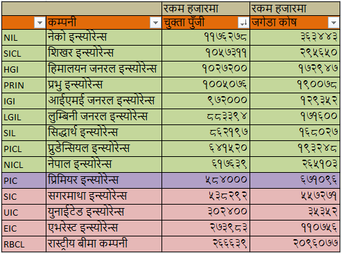 चुक्ता पुँजी र जगेडा कोषको आधारमा: