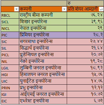 प्रति शेयर आम्दानीको आधारमा :