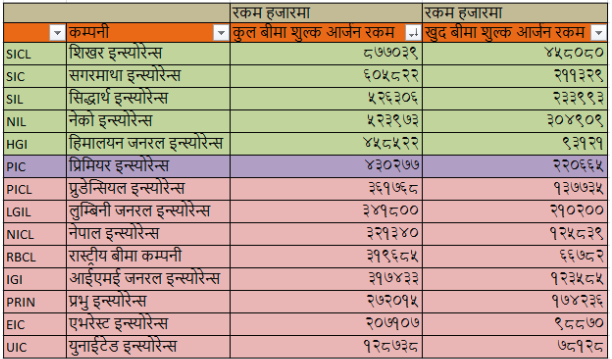 कम्पनीको बीमा शुल्क आर्जन रकम भने स्थिर रहेको छ।