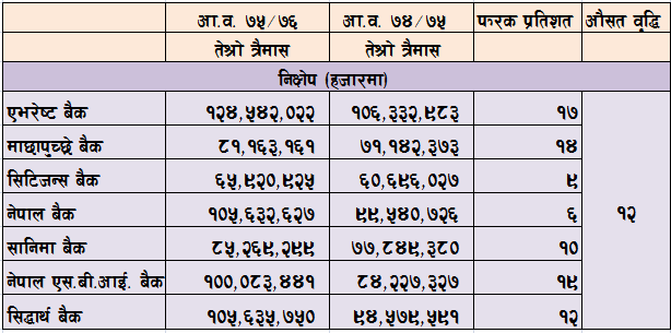 निक्षेपमा १२ प्रतिशतको वृद्धि :