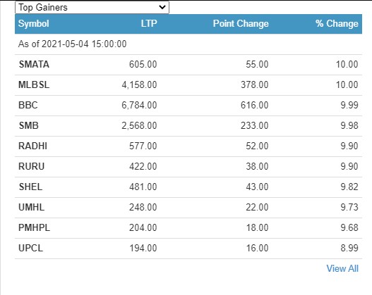 त्यस्तै, आज सबैभन्दा समता लघुवित्त र महिला लघुवित्तका लगानीकर्ताले १० प्रतिशतका दरले कमाएका छन् । विशाल बजार कम्पनीका लगानीकर्ताले ९ दशमलव ९९ प्रतिशतका दरले कमाएका छन् ।