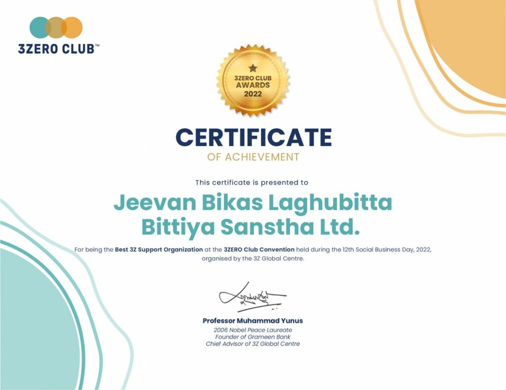 काठमाण्डाैं । जीवन विकास लघुवित्त संस्थाले गरिबी निवारण र प्रदुषण नियन्त्रणमा याेगदान पुर्याएवापत अन्तर्राष्ट्रिय सम्मान प्राप्त गरेकाे छ । बंगलादेशमा मुख्यालय रहेकाे थ्री जिराे क्लबले जीवन विकास लघुवित्त संस्थालाई वेष्ट थ्री जेड सपाेर्ट अर्गनाइजेशन अवार्डबाट सम्मान गरिएकाे हाे ।