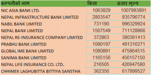 म्युचुअल फण्डको आकर्षणमा नेपाल बैंकको शेयर पनि देखिन्छ । नेपाल बैंकको शेयर मात्रै फण्डहरु सँग ७ लाख ३१ हजार १९० कित्ता छ । यसको चैत मसान्तको बजार मूल्य अनुसार ७१ करोड ११ लाख रुपैयाँ पर्न जान्छ । अधिकाम्स लघुवित्तको रोजाइमा छिमेक लघुवित्तको शेयर पनि पर्छ । फण्डहरुले छिमेकको तीन लख ६२ हजार ३५६ कित्ता शेयर होल्ड गरेर राखेका छन् ।