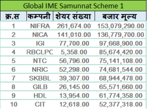 ग्लोबल आइएमई सम्मुन्त स्किम एकले १० वटा कम्पनीमा मात्रै ८७ करोड १६ लाख रुपैयाँको लगानी गरेका छन् । फण्डले सबैभन्दा धेरै इन्फ्राको शेयरमा १५ करोड ३० लाख रुपैयाँको लगानी गरेको छ ।