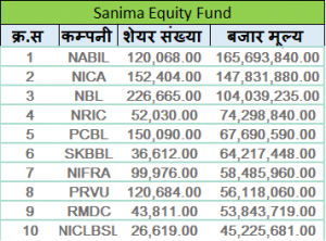 सानिमा इक्वीटी फण्डले पनि सबैभन्दा धेरै नविल बैंकको शेयरमा १६ करोड ५६ लाख रुपैयाँको लगानी गरेको छ ।