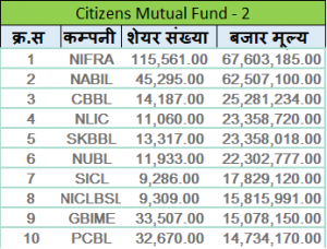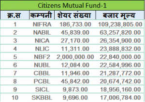 सञ्चालमा रहेका म्युचुअल फण्डको रोजाइमा परेका १० कम्पनीहरुमा अधिकाम्स बाणिज्य बैंकका शेयर छन् । बाणिज्य बैंक पछि बीमा कम्पनीको शेयरमा होल्डिङ देखिन्छ । म्युचुअल फण्डको रोजाइमा लघुवित्तको शेयर खासै देखिदैन । नेपाल राष्ट्र बैंकले लघुवित्त वित्तीय संस्थालाई हकप्रद निष्काशन गर्न दिएको छैन । बीमा कम्पनीहरुले पनि पूँजी बृद्धि गर्ने हल्लाले चैत महिनामा बीमा कम्पनीको शेयरमा सार्वाधिक आकर्षण देखिएको थियो ।