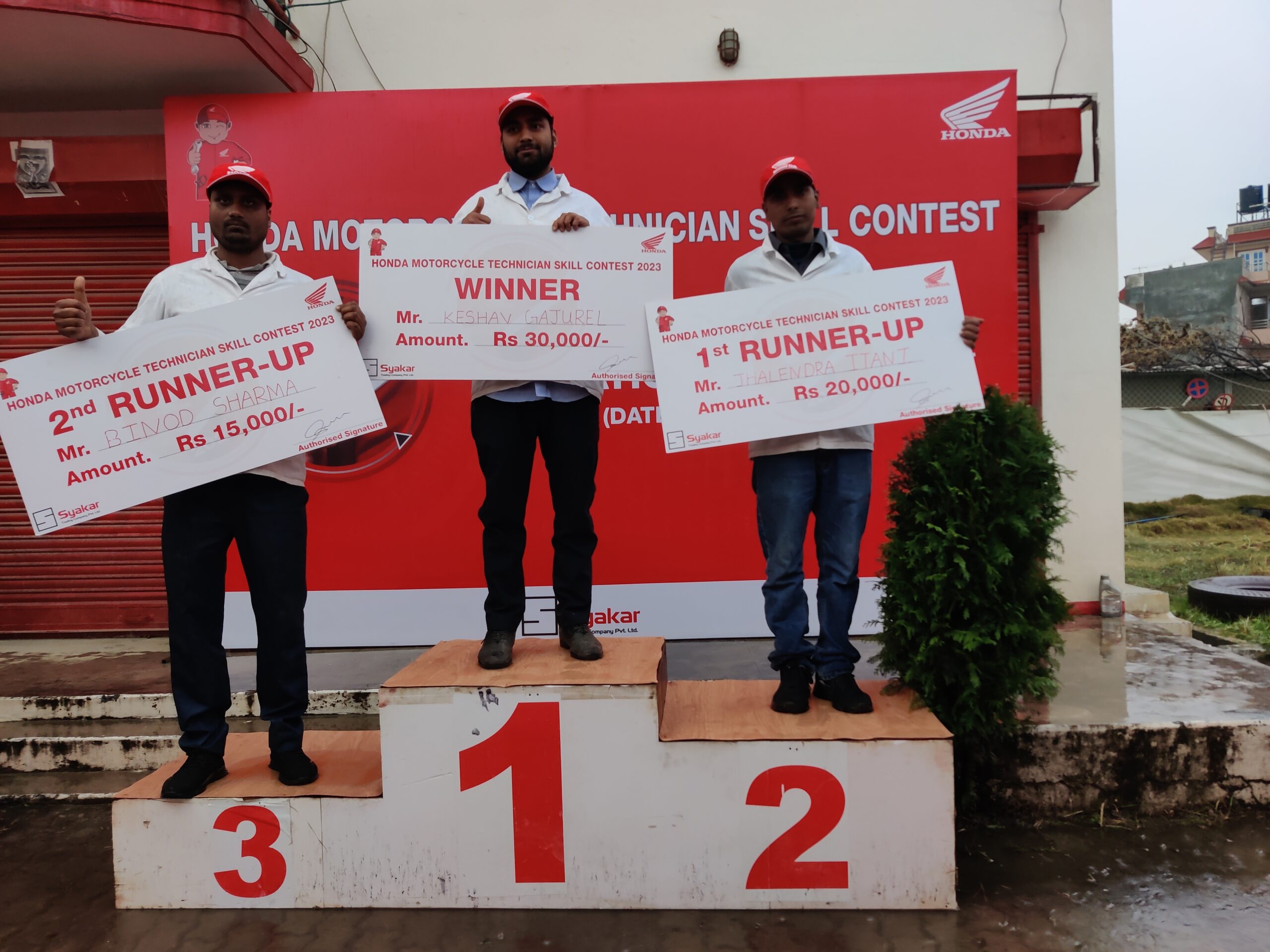 स्याकार ट्रेडिङ्ग कम्पनी प्रा. लि. सर्भिस डिभिजनको अगुवाईमा विभिन्न ५ वटा क्षेत्रिय प्रतियोगिता सम्पन्न गरी प्रत्येक क्षेत्र वाट २÷२ जना छनोट भई राष्ट्रिय स्तरको प्रतियोगितामा सहभागी भएका थिए र सो प्रतियोगिता होण्डाको ट्रेनिङ्ग सेन्टर ग्वार्को ललितपुरमा सम्पन्न भएको हो । प्रतियोगिता अवधि भर सहभागी टक्निशियन हरु होण्डाको नियम तथा अनुशासन पालना गर्दै होण्डा स्ट्याडर्ट प्रोसिडियूर अन्तर्गत रहेर प्रतियोगितामा सहभागी भएका थिए ।