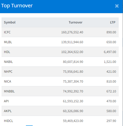 त्यस्तै, महालक्ष्मी विकास बैंकको १३ करोड ९९ लाख रुपैयाँको शेयर कारोबार भएको छ । हिमालयन डिस्टीलरीको १० करोड २३ लाख रुपैयाँको शेयर कारोबार भएको छ । नविल बैंकको ८ करोड रुपैयाँको शेयर कारोबार भएको छ । नेशनल हाइड्रोपावर कम्पनीको ७ करोड रुपैयाँको शेयर कारोबार भएको छ ।
