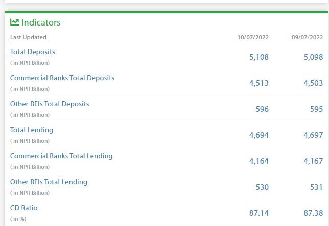 नेपाली बैंकिङ प्रणालीमा कुल निक्षेप ५१ खर्ब पुगेको छ । असार २५ गते ५० खर्ब ९८ अर्ब पुगेको निक्षेप एकै दिन करिव १० अर्बले वृद्धि भएको हो । वाणिज्य बैंकमा एकै दिन निक्षेप आक्रामक वृद्धि हुँदा प्रणालीमा ५१ खर्ब निक्षेप पुगेको हो।
