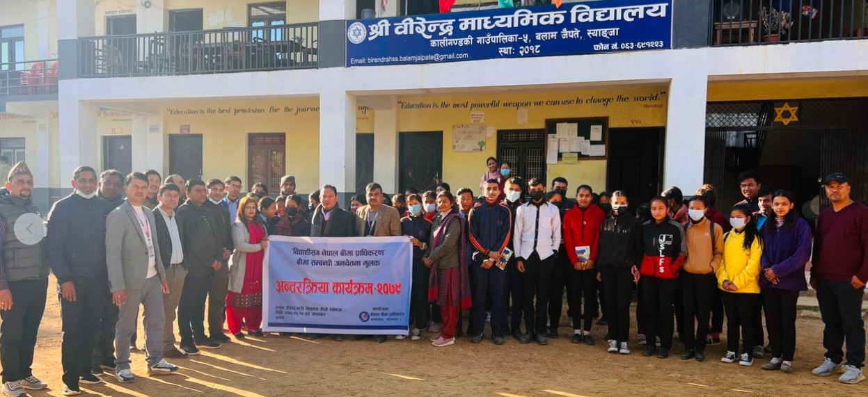 त्यसैगरी प्राधिकरणले पुस २४ गते कालीगण्डकी गाउँपालिकाको श्री वीरेन्द्र माध्यमिक बिद्यालयमा बिद्यार्थीहरुसँग बीमा सम्बन्धी जनचेतनामुलक छलफल तथा अन्तरक्रिया सम्पन्न गरेको थियो ।