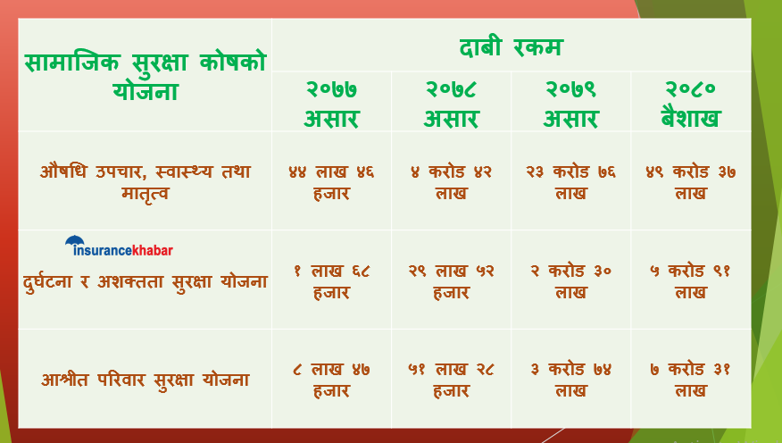 सामाजिक सुरक्षा कोषको बीमा योजना, योगदानकर्तासँग ५ अर्ब प्रिमियम उठाएर ७८ करोडको दाबी भुक्तानी
