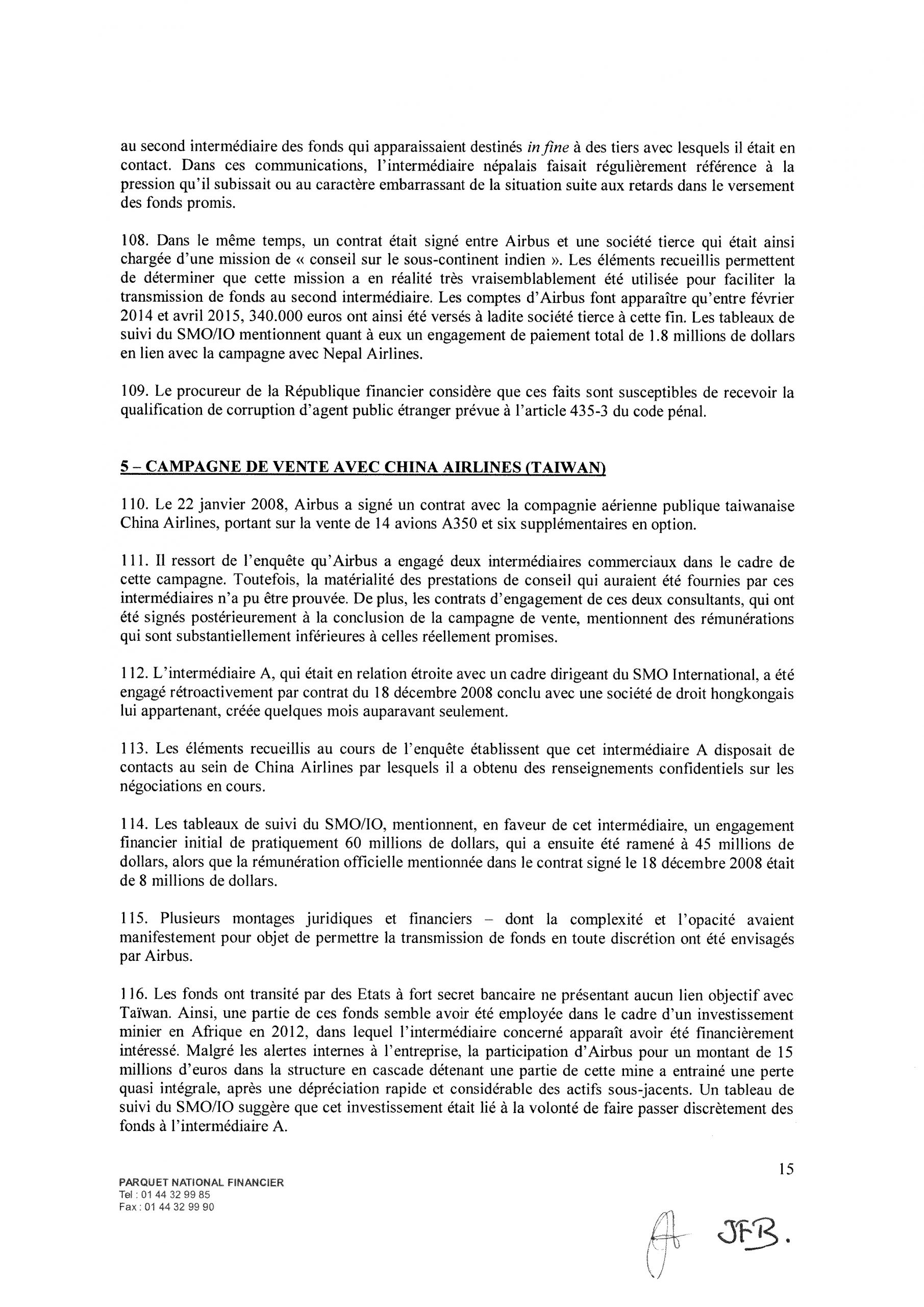 - However, from 2009, the SMO / 10 monitoring tables mentioned a financial commitment linked to the Nepal Airlines campaign, which suggested that a payment had been promised to the intermediaries or to Jun of them in connection with the contracts. finally obtained in 2013. In fact, e-mail exchanges between executives of SMO International and the second Nepalese intermediary followed the conclusion of the 2013 sales contract. Through these exchanges, several methods were envisaged for transferring funds. Under cover of a code language, it was a question of transferring