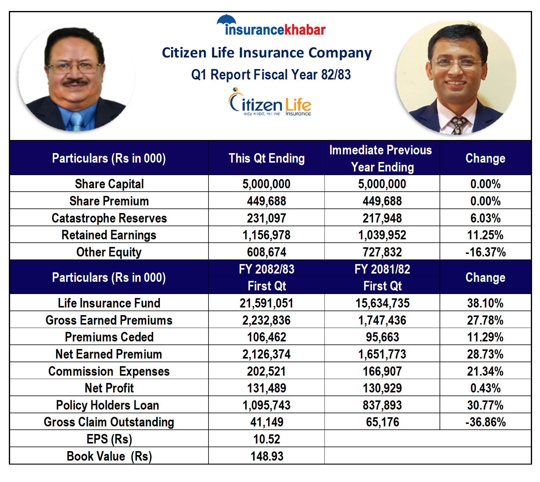 काठमाडौं । सिटिजन लाइफ इन्स्योरेन्स कम्पनीले आर्थिक वर्ष २०८२।८३ को प्रथम त्रैमास (साउन–असोज)को अपरिष्कृत वित्तीय विवरण सार्वजनिक गरेको छ।