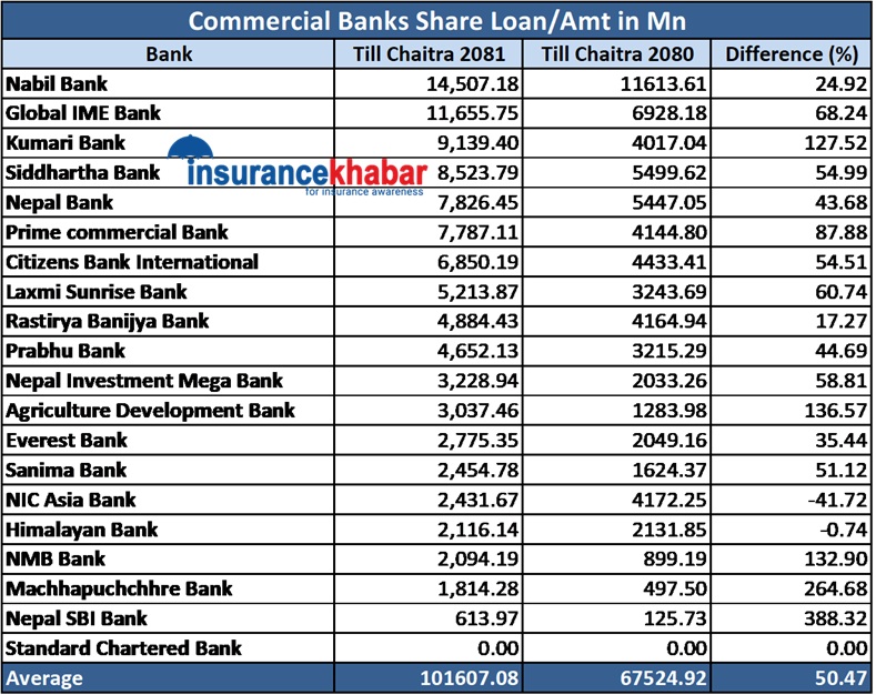 वाणिज्य बैंकहरुमा ५०%ले बढ्यो शेयर लोनको माग, रु. १ खर्ब बढी प्रवाह (सूचीसहित)