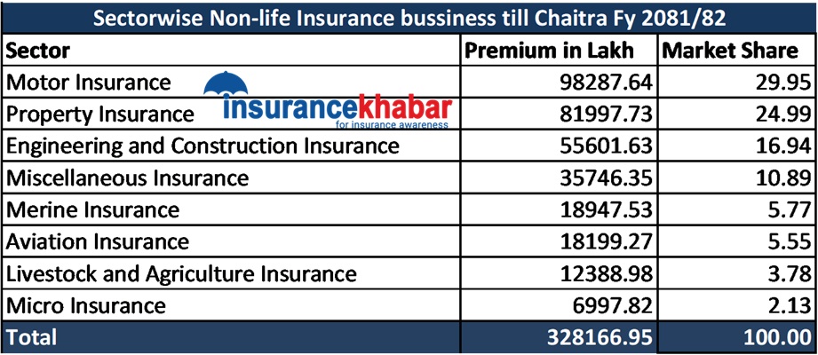 Kathmandu. Non-life insurance companies have done business of more than Rs 32.81 billion till Mid-April of the current fiscal year.