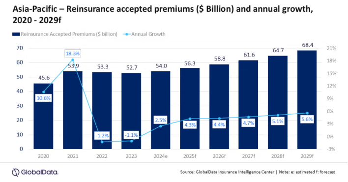 Global Data predicts that business in The Asia Pacific region will reach $68.4 billion by 2029, with an annual average growth rate of 4.8 percent. Global data predicts that this increase will be due to stable reinsurance fees and increased demand for cover of the growing disaster risk.