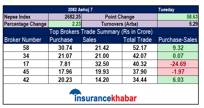 The highest amount was traded in the market today with a turnover of Rs 5.29 billion. A total of Rs 52.17 crore was traded from this broker. Out of this, Rs 30.74 crore was purchased and Rs 21.42 crore was sold.