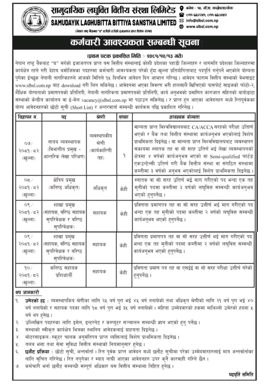 Kathmandu. Community Microfinance Institution has requested employees for various positions. The institution has requested 1 person for Deputy Manager (Department Head, Internal Audit), some for Regional Head, some for Branch Head and some for Junior Assistant Trainee. The company has requested employees for its central office and various branch offices. Interested and qualified candidates should apply within 15 days from the date of publication of the notice.