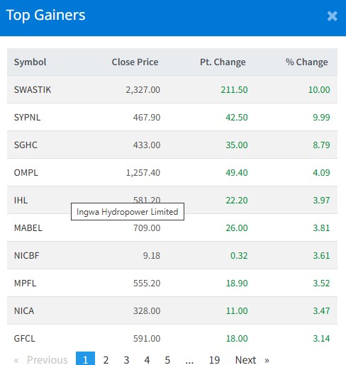 Investors of Swastik Laghubitta Bittiya Sanstha have earned the most today. Today, the company’s investors have earned at the rate of 10 percent. Investors of SY Panel have earned 9.99 percent. Investors of Shwat Ganga Company earned 8.79 percent.