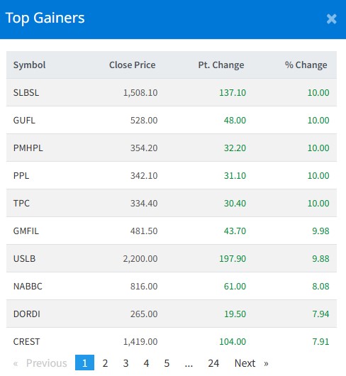 Shares of five companies rose by 10 percent today. The investors of Community Laghubitta, Gorkhas Finance, Panchakanya Mai Hydropower, People’s Power and Terhathum Hydropower earned the most by 10 per cent each.