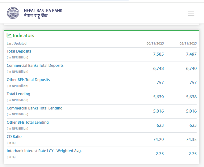 Kathmandu. Deposits in the banking system have increased by Rs 8 billion in a single day. According to the Nepal Rastra Bank (NRB), deposits stood at Rs 7.59 trillion as of Thursday, up from Rs 7.49 trillion on Wednesday.
