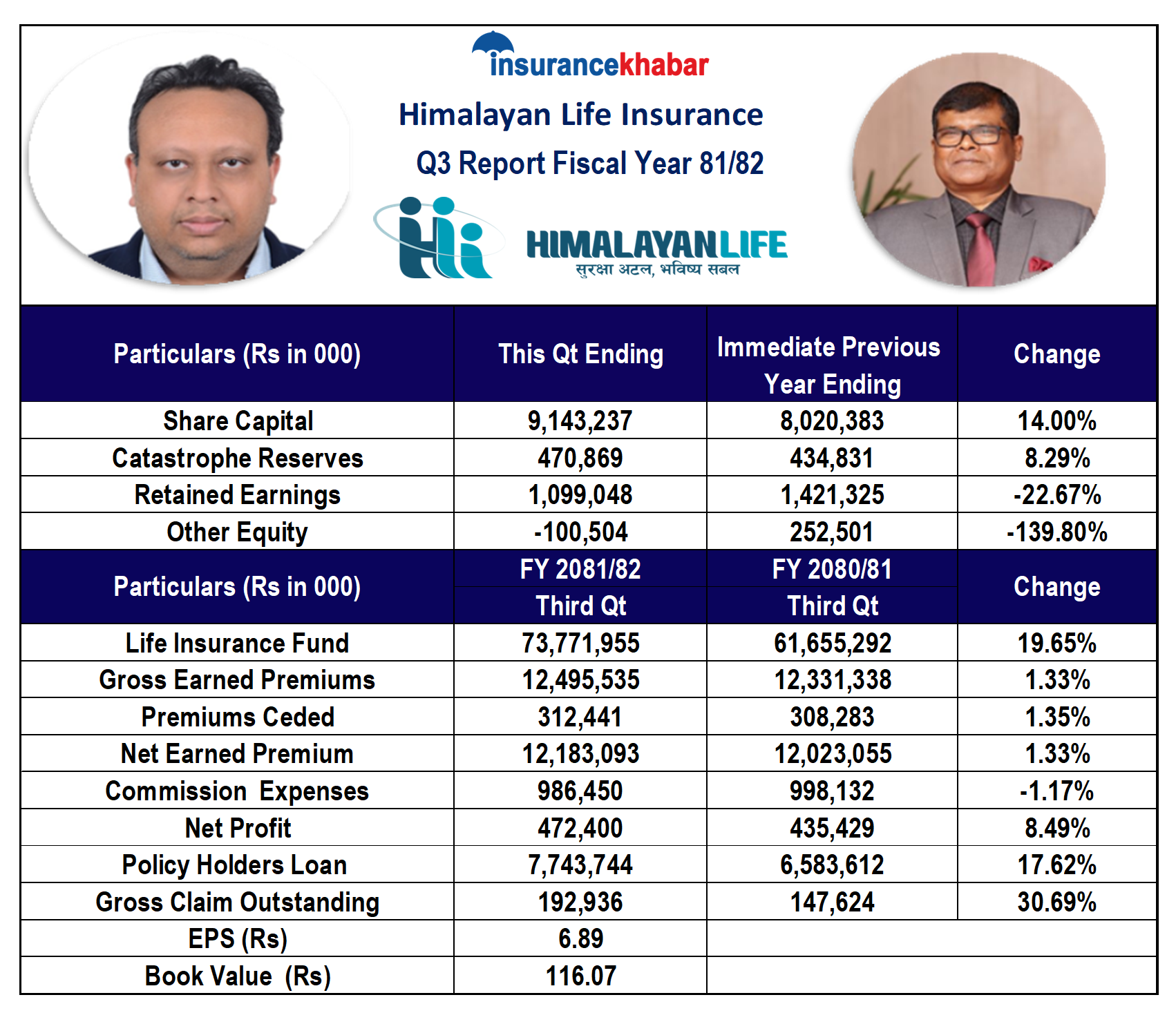 Kathmandu. Himalayan Life Insurance Company has published the revised financial statements for the third quarter of the fiscal year 2081/82 BS. According to the financial statement, most of the company’s indices have seen an increase.