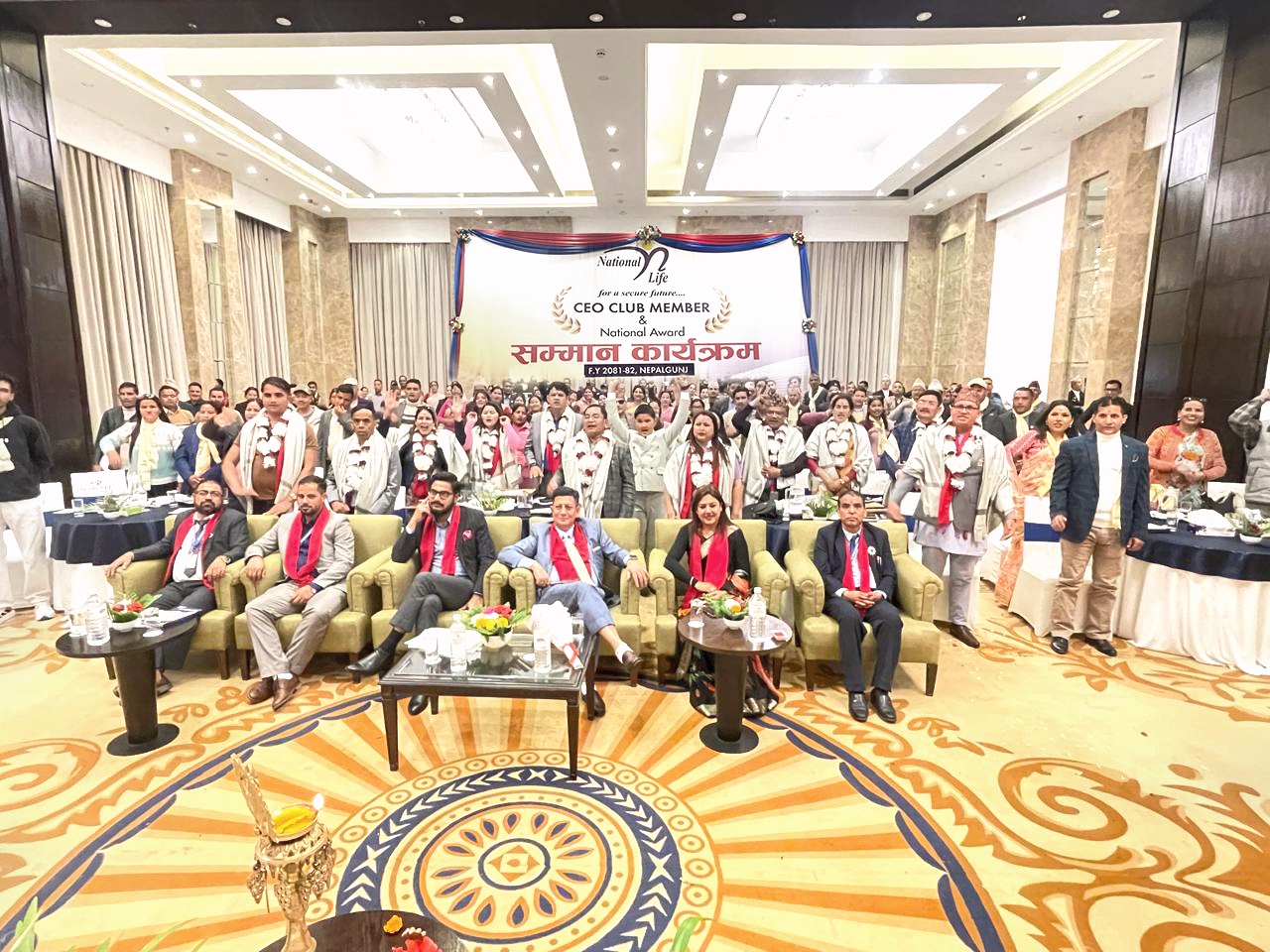Kathmandu. National Life Insurance Company (NLIC) organized a function at Hotel Soaltee Westend, Nepalgunj under the chairmanship of the company’s Chief Executive Officer Suresh Prasad Khatri. The company felicitated 115 agents from Karnali Province and 161 agents from Sudurpaschim Province, department heads, Province Chiefs and branch heads of branch offices of Lumbini Province in the presence of 161 agents from Sudurpaschim Province.