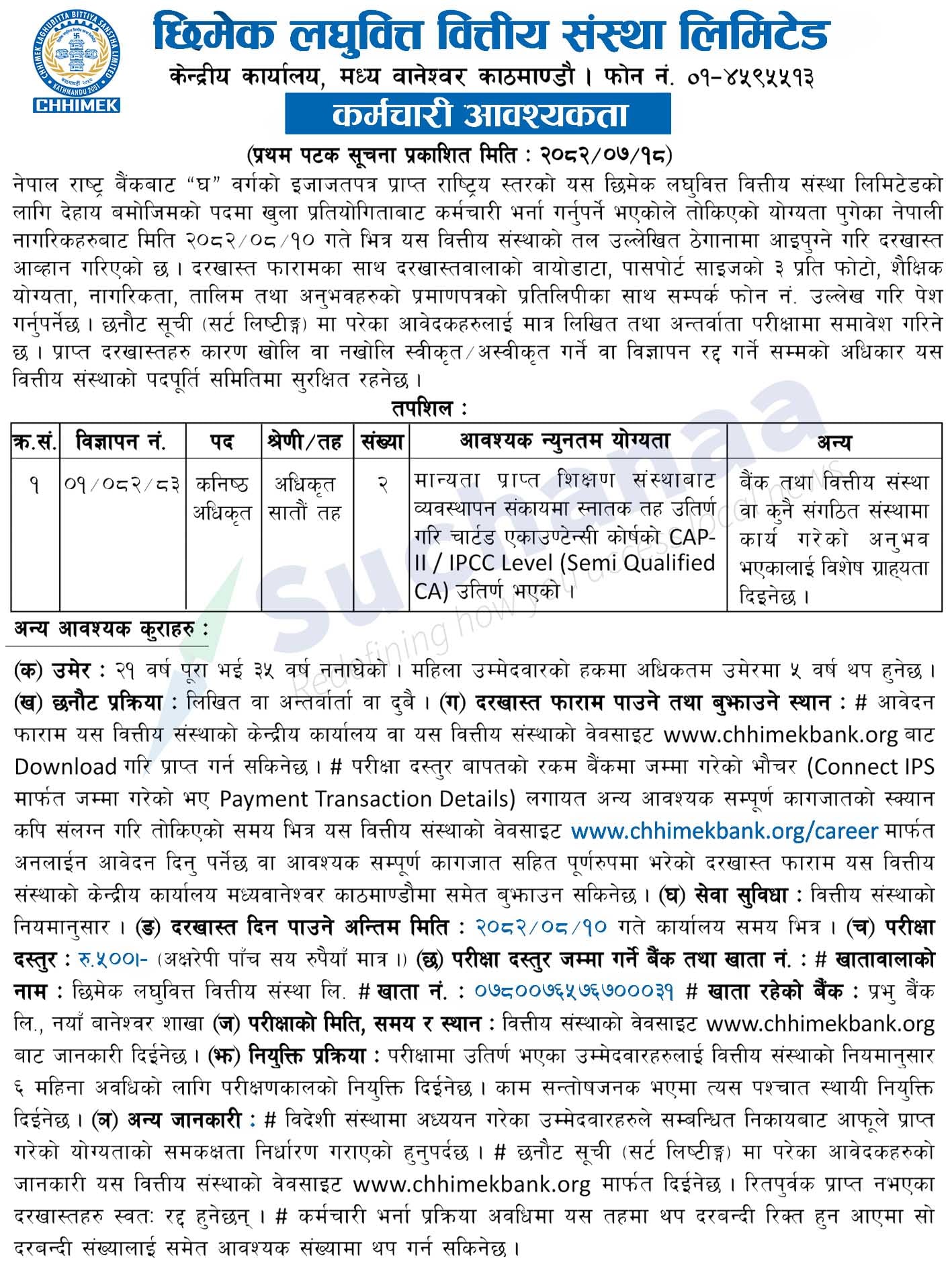 Kathmandu. Neighboring Microfinance Financial Institution has demanded employees. The organization has asked for 2 employees for the post of junior officer. To apply for the post, the candidate should have passed Bachelor’s level in management faculty from a recognized educational institution. Applications for the post have to be submitted by November 23.