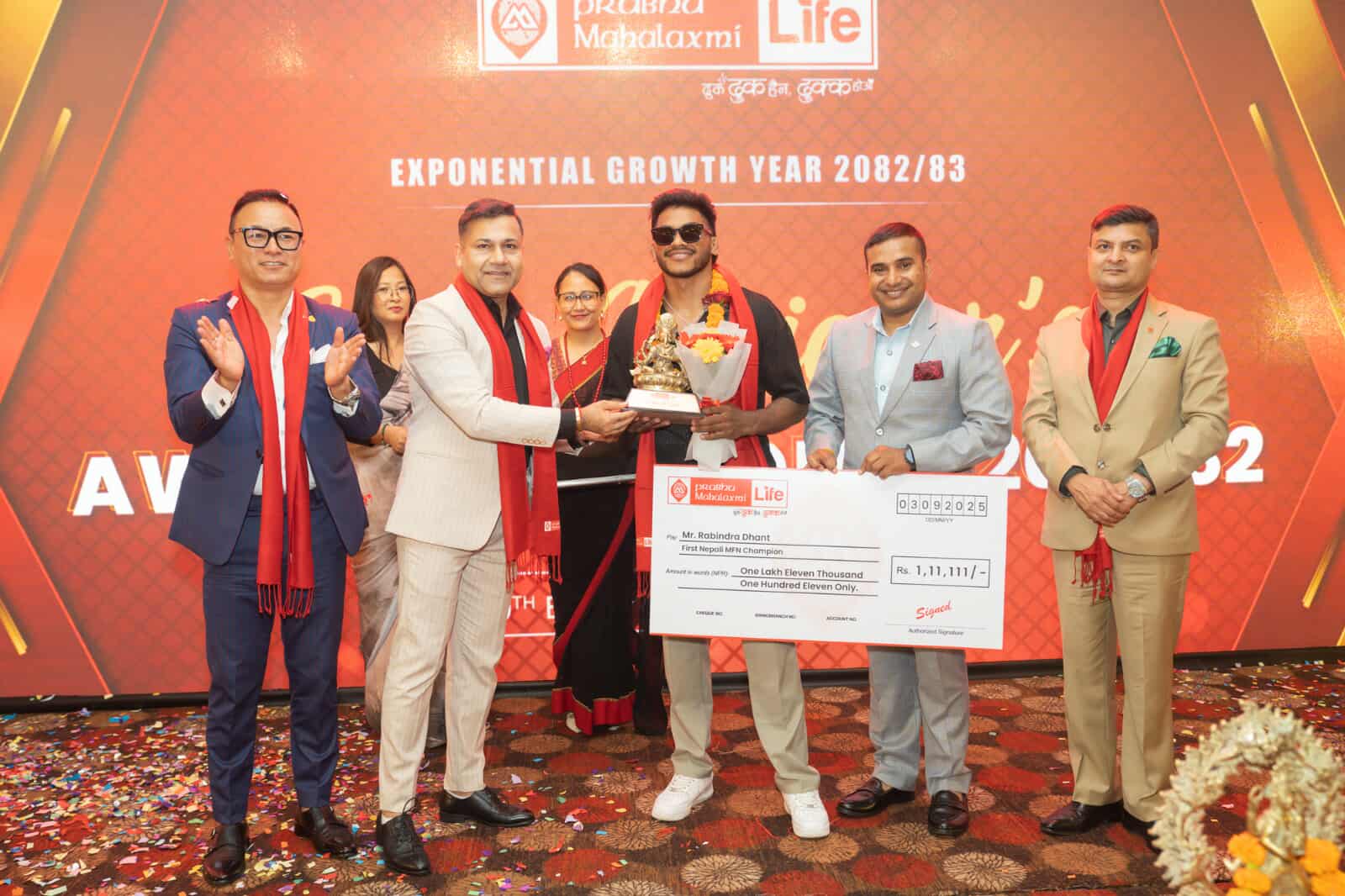 On the occasion, Prabhu Mahalakshmi Life Insurance Limited honoured Rabindra Dhant, winner of Metrics Fight Night (MFN) 2025, with a cash prize of Rs 111,111.