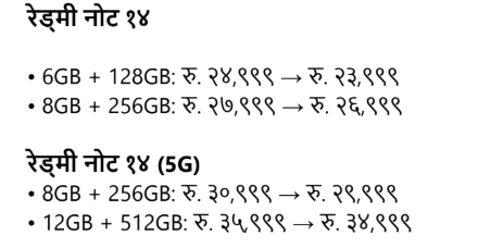 Combining a striking design, powerful performance and advanced camera system, Redmi Note 14 series has always met users’ expectations. The revised prices are effective from September 23, 2025 and will be available at all authorized TXiaomi Retailers and leading smartphone stores all across Nepal.