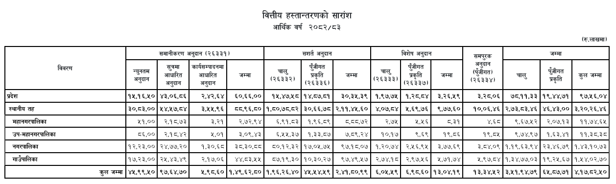 Kathmandu. Next fiscal year 2082. The provincial and local levels will get rs 417 billion more grant in 83.