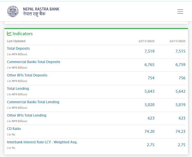 Kathmandu. Deposits in the banking system have increased by Rs 4 billion in a single day. According to the Nepal Rastra Bank (NRB), deposits have increased to Rs 7.519 trillion from Rs 7.515 trillion on Saturday.