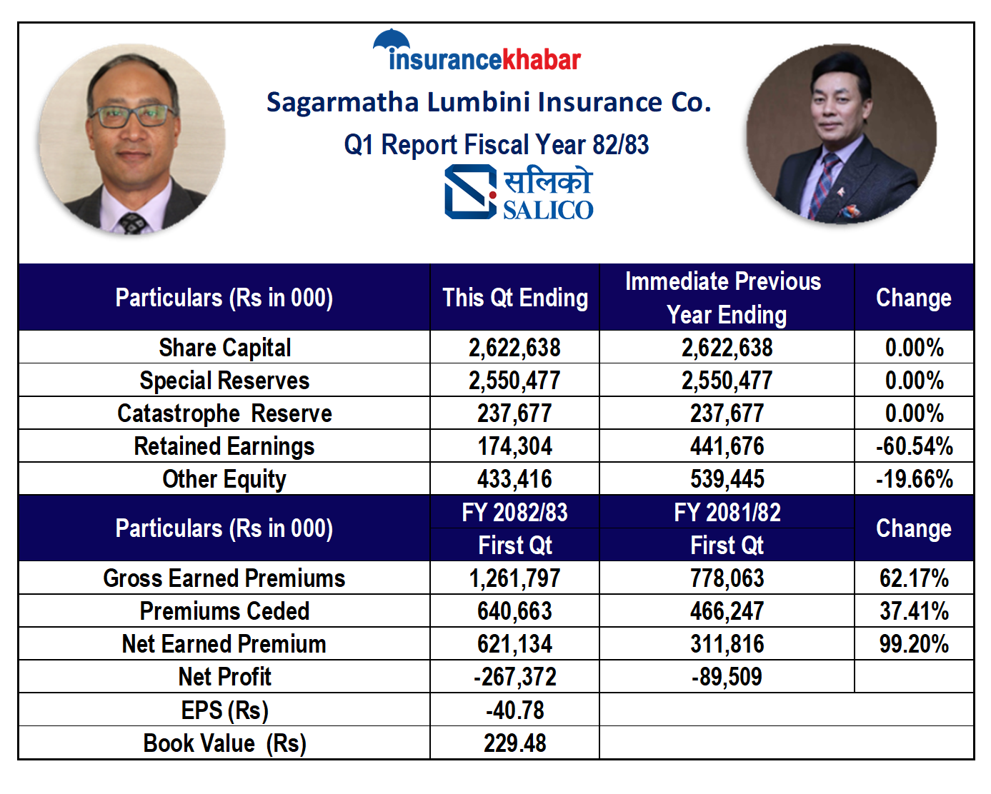 Kathmandu. Sagarmatha Lumbini Insurance Company has published its financial results for the first quarter of the fiscal year 2082/83. According to the company’s financial report, the company’s profit has been negative while most of the indices have increased.