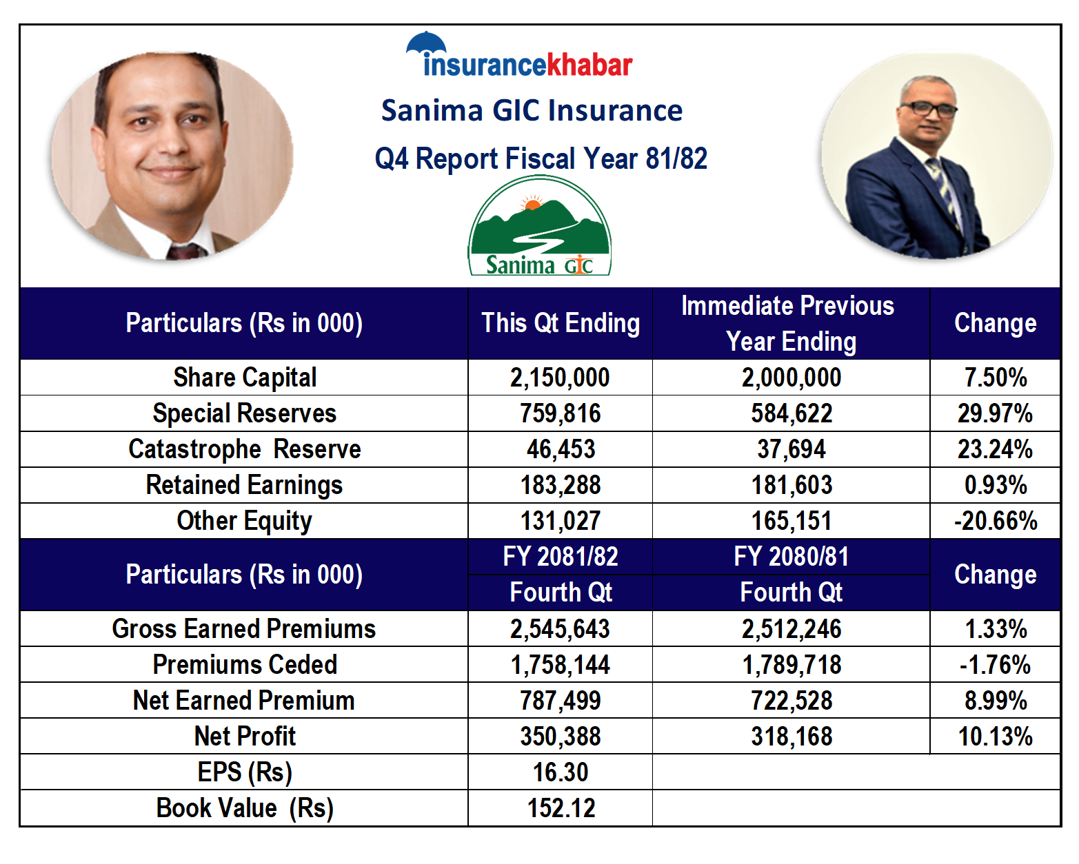 Kathmandu. Sanima GIC Insurance Company has released the financial statements for the fourth quarter of the last fiscal year 2081/82 BS. According to the company’s financial statements, most of the indices have increased.