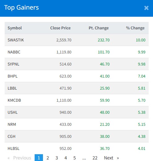Today, the investors of Swastik Laghubitta have earned the most. Today, the company’s investors have earned 10 percent. Investors of Narayani Development Bank earned 9.99 percent of the profit. Investors of SY Panel have earned 9.98 percent. Investors of Barahi Hydro have earned 7 percent.