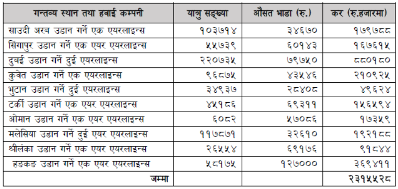 According to the Office of the Auditor General, air service providers who sold tickets to passengers flying to different destinations from Nepal have evaded taxes by not paying tax to the Government of Nepal as per the provisions of Section 70 of the Income Tax Act, 2058.