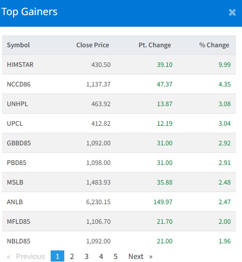 Today, the investors of Snow Star Energy Company have earned the most. Today, the investors of this company have earned 9.99 percent. Unit owners of NCC Debenture 2086 have earned 4.35 percent. Investors of Union Hydropower have earned 3 percent.