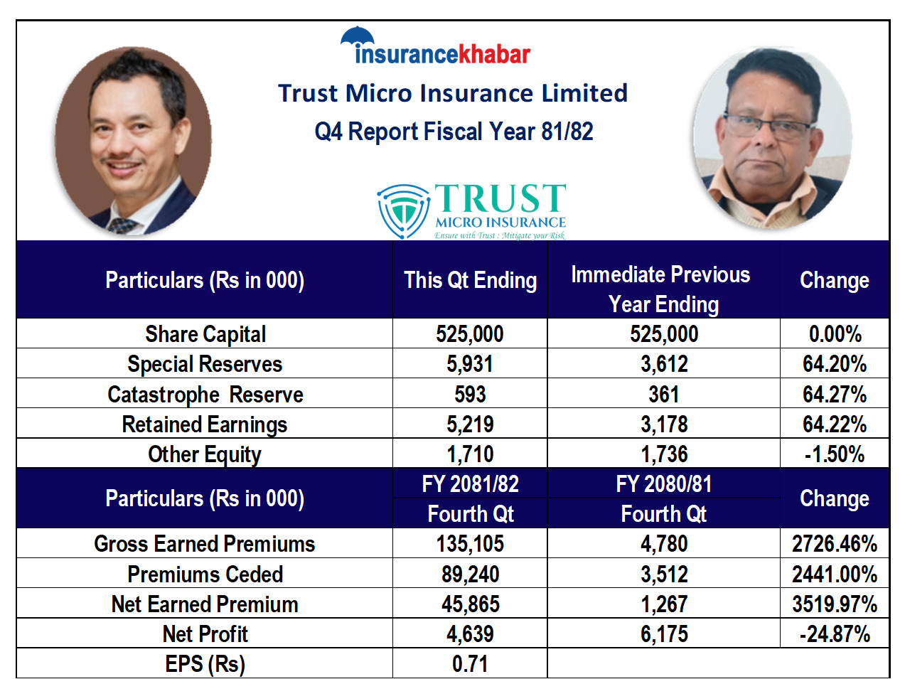 Kathmandu. Trust Micro Insurance Company last fiscal year 2081. The financial statements of 82 have been made public.