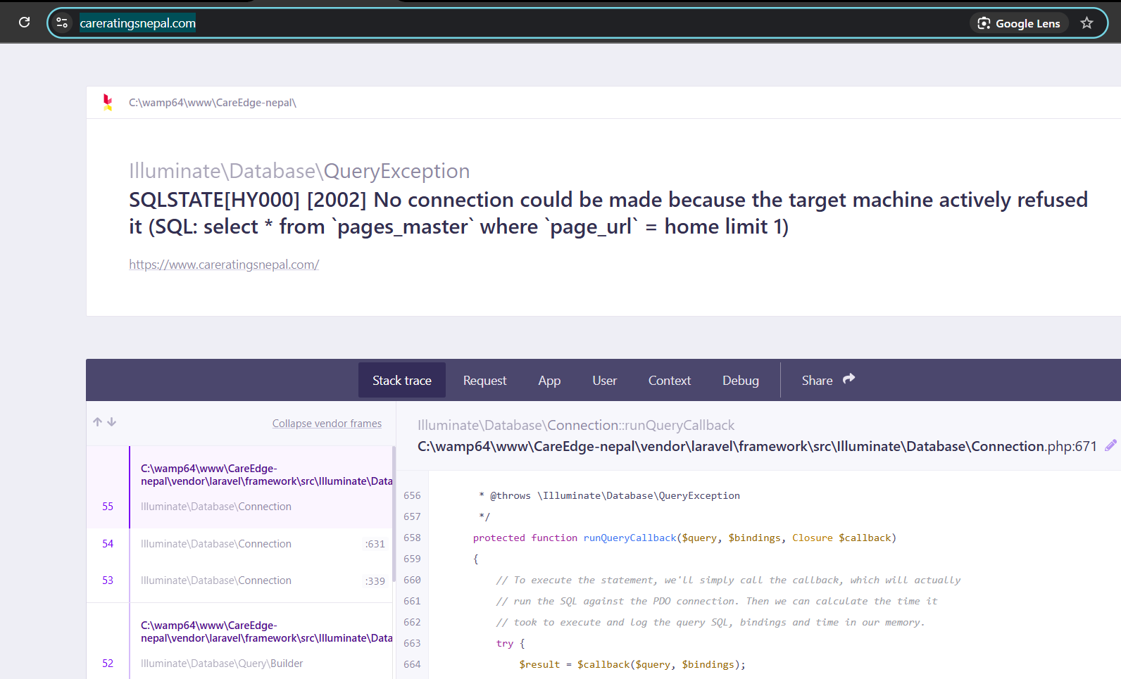 Kathmandu. A technical problem has been observed on the website of credit rating agency, Care Ratings Nepal. The website is not opening and a message saying ”No connection could be made because the target machine actively refused it” is appearing on the website.