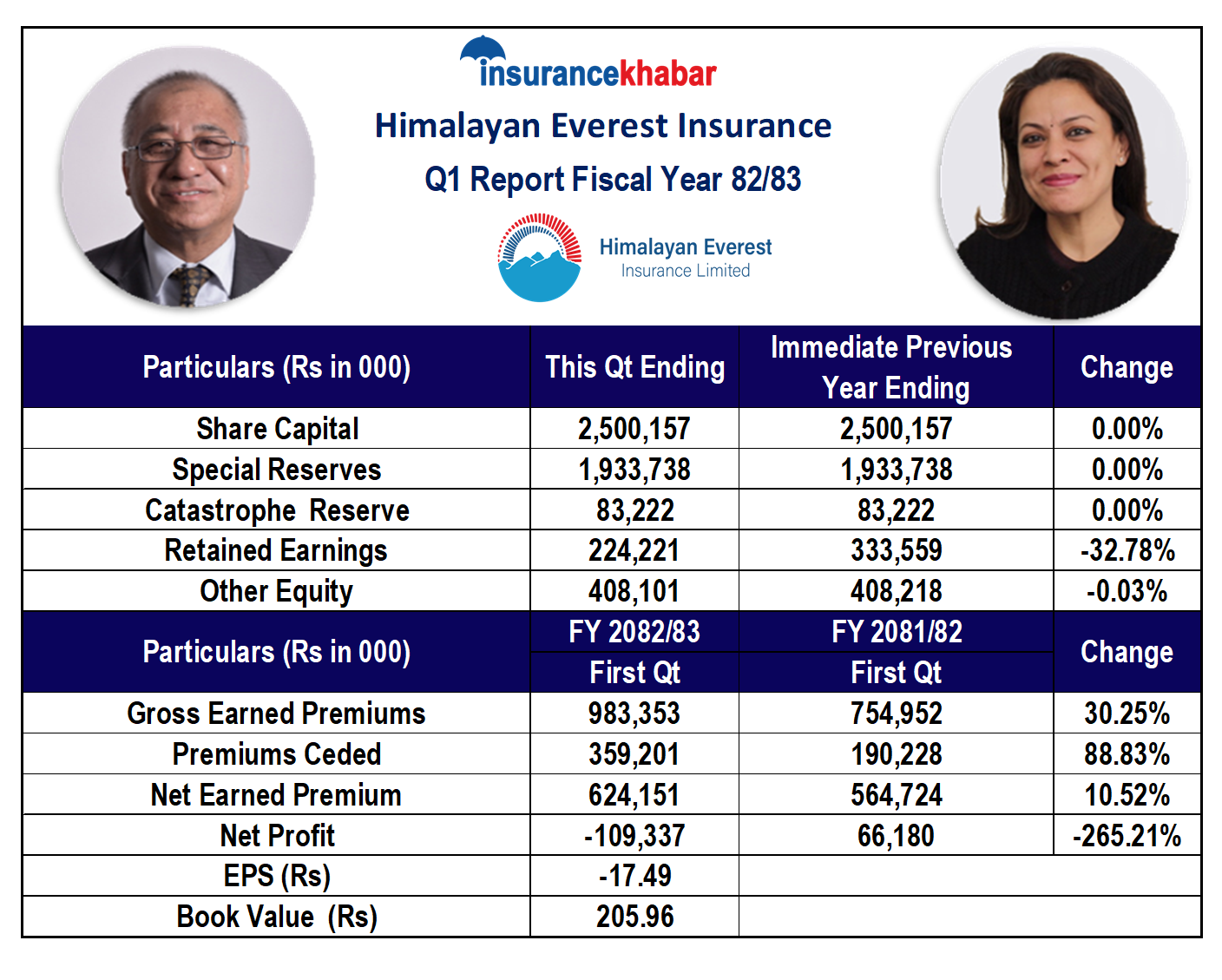 काठमाडौं । हिमालयन एभरेष्ट इन्स्योरेन्सले गत आर्थिक वर्ष २०८२।८३ को प्रथम त्रैमास (साउन–असोज)को अपरिष्कृत वित्तीय विवरण सार्वजनिक गरेको छ।