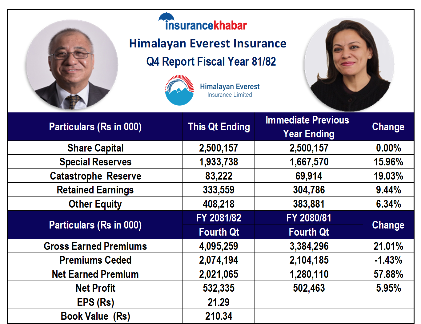 काठमाडौं । हिमालयन एभरेष्ट इन्स्योरेन्सले गत आर्थिक वर्ष २०८१।८२ को चौथो त्रैमाससम्मको अपरिष्कृत वित्तीय विवरण सार्वजनिक गरेको छ।