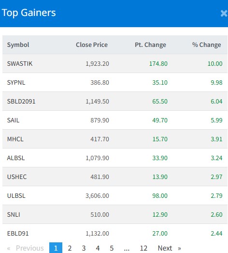 आज सबैभन्दा धेरै स्वस्तिक लघुवित्त वित्तीय संस्थाका लगानीकर्ताले कमाएका छन् । आज यस कम्पनीका लगानीकर्ताले १० प्रतिशतका दरले कमाएका हुन् । एसवाई प्यानलका लगानीकर्ताले ९ दशमलव ९८ प्रतिशतका दरले कमाएका हुन् । एसबिएल डिबेञ्चरका इकाईधनीले ६ प्रतिशतका दरले कमाएका छन् ।