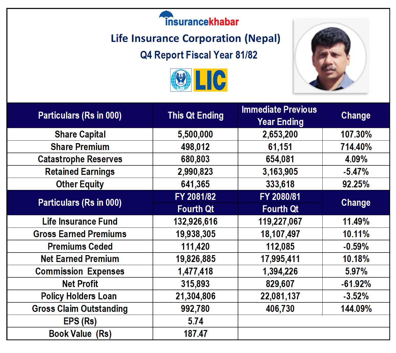 गत आर्थिक वर्षमा कम्पनीको जीवन बीमा कोषमा १ खर्ब ३२ अर्ब ९२ करोड ६६ लाख रुपैयाँ रहेको छ। अघिल्लो वर्षमा जीवन बीमा कोषमा १ खर्ब १९ अर्ब २२ करोड ७० लाख रुपैयाँ थियो। अघिल्लो वर्षको तुलनामा समीक्षा अवधिमा कम्पनीको जीवन बीमा कोषको आकार ११.४९ प्रतिशतले बढेको छ।