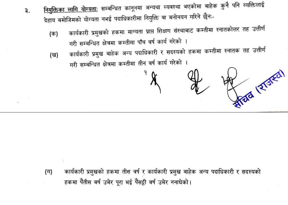 काठमाडौं । अर्थ मन्त्रालयले सार्वजनिक निकायमा कार्यकारी प्रमुख बन्न उमेरको हदबन्दी हटाएको छ।