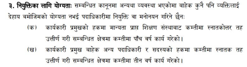यसअघि मापदण्डको बुँदा ३ को ‘ग’मा कार्यकारी प्रमुखको हकमा ३० वर्ष र कार्यकारी प्रमुखबाहेक अन्य पदाधिकारी र सदस्यको हकमा ३५ वर्ष उमेर पूरा भई ६५ वर्ष उमेर ननाघेको हुनुपर्ने व्यवस्था रहेको छ। तर, दोस्रो संशोधनमार्फत यो व्यवस्था नै हटाइएको छ।