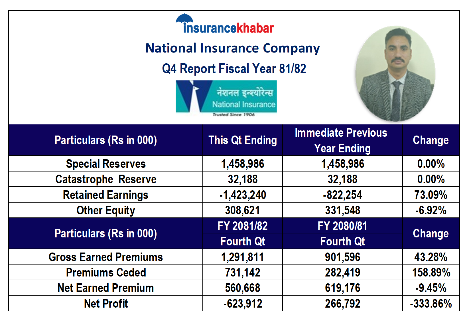 काठमाडौं । नेशनल इन्स्योरेन्स कम्पनीले गत आर्थिक वर्ष २०८१ /८२ को चौथोे त्रैमासम्मको अपरिष्कृत वित्तीय विवरण सार्वजनिक गरेको छ ।