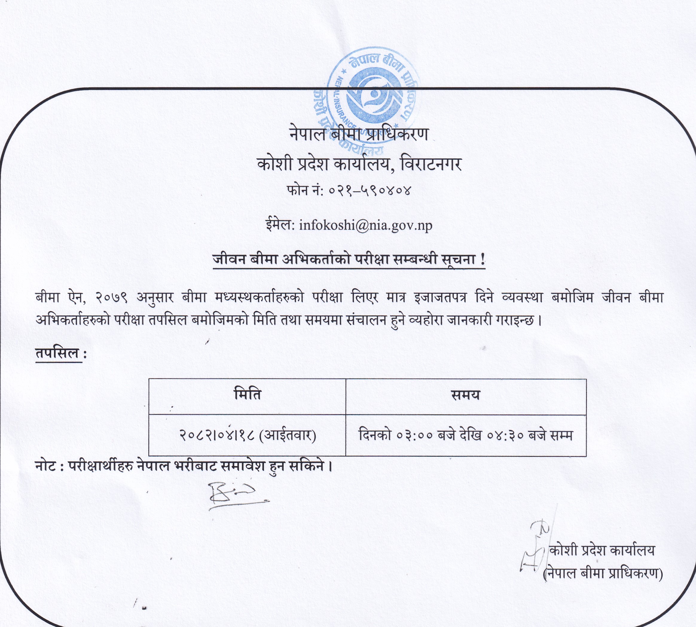 बीमा ऐन २०७९ अनुसार बीमा मध्यस्थकर्ताको परीक्षा लिएर मात्रै इजाजतपत्र दिने व्यवस्था भए बमोजिम जीवन बीमा अभिकर्ताको परीक्षा सञ्चालन गर्न लागेको हो ।