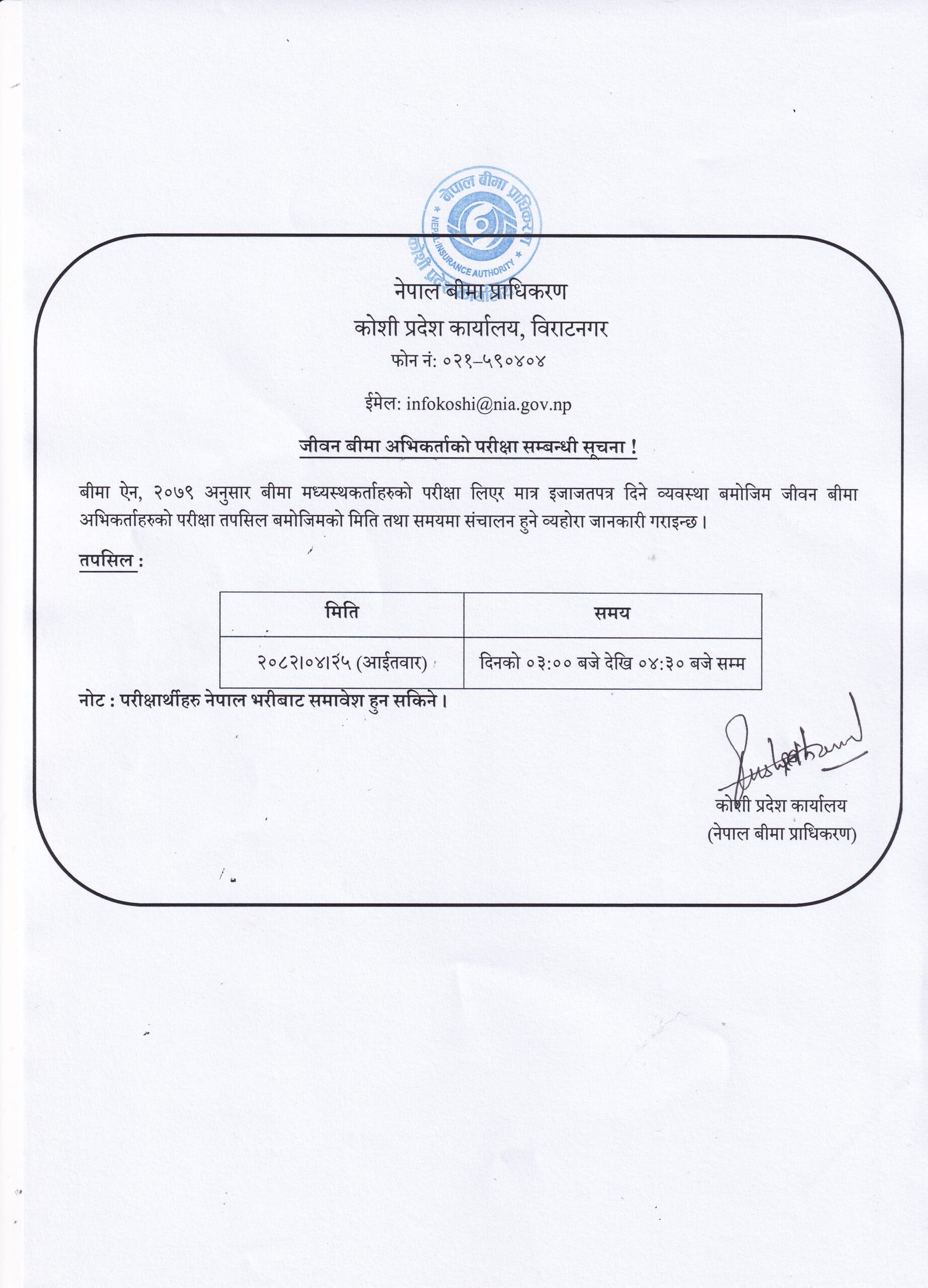 बीमा ऐन २०७९ अनुसार बीमा मध्यस्थकर्ताको परीक्षा लिएर मात्रै इजाजतपत्र दिने व्यवस्था भए बमोजिम जीवन बीमा अभिकर्ताको परीक्षा सञ्चालन गर्न लागेको हो ।